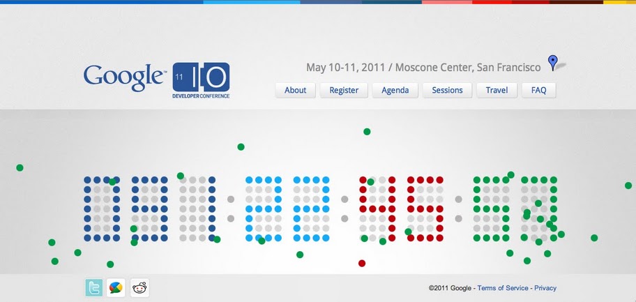 If you liked our HTML5 countdown, stay tuned for more surprises. We’ll keep you posted on the latest developments for Google I/O 2011 at the website, on Twitter (@Googleio) and Google Buzz. Get your tickets early—last year we sold out in record time!